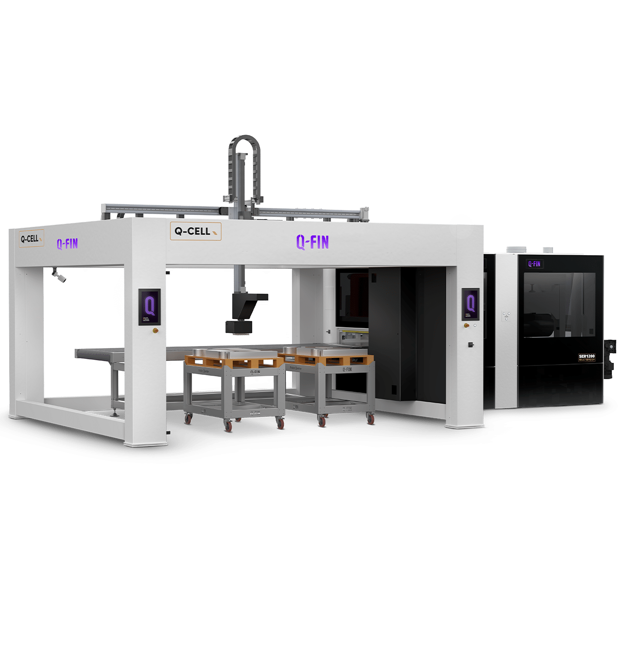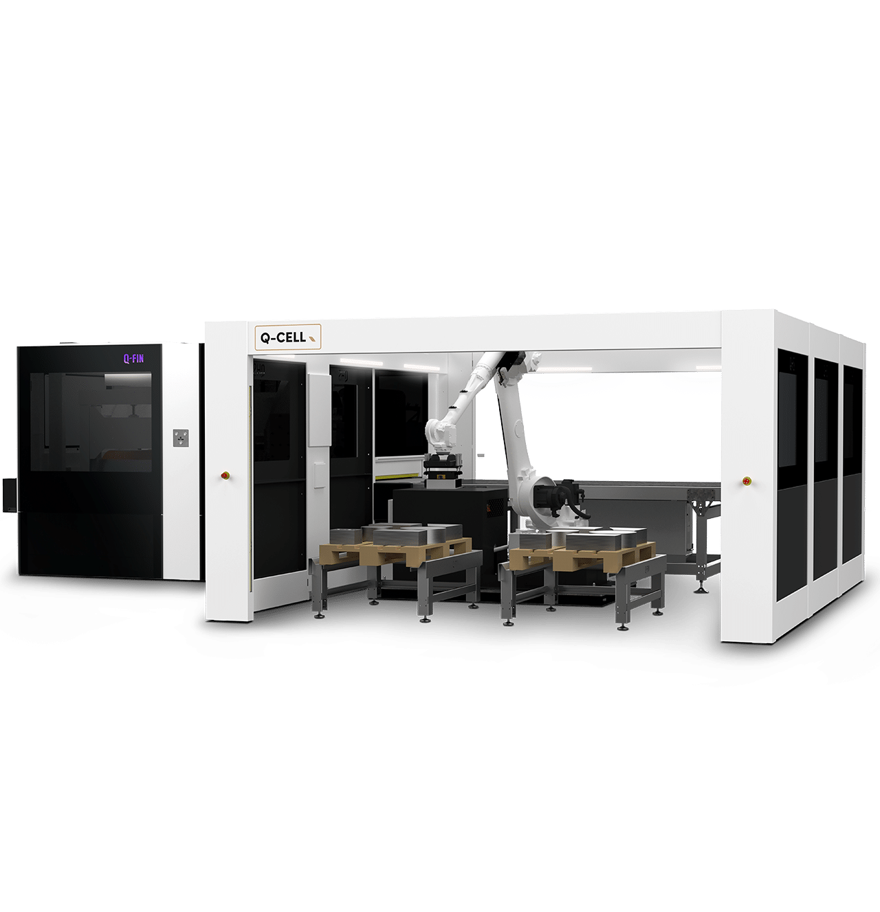 Uppgradera din efterbearbetningsprocess och producera dygnet runt med Q-Cell Robot. Den mest effektiva lösningen för helautomatisk in- och/eller utmatning av plåtdetaljer i kombination med en Q-Fin-finishmaskin med 1200 eller 1500 mm arbetsbredd