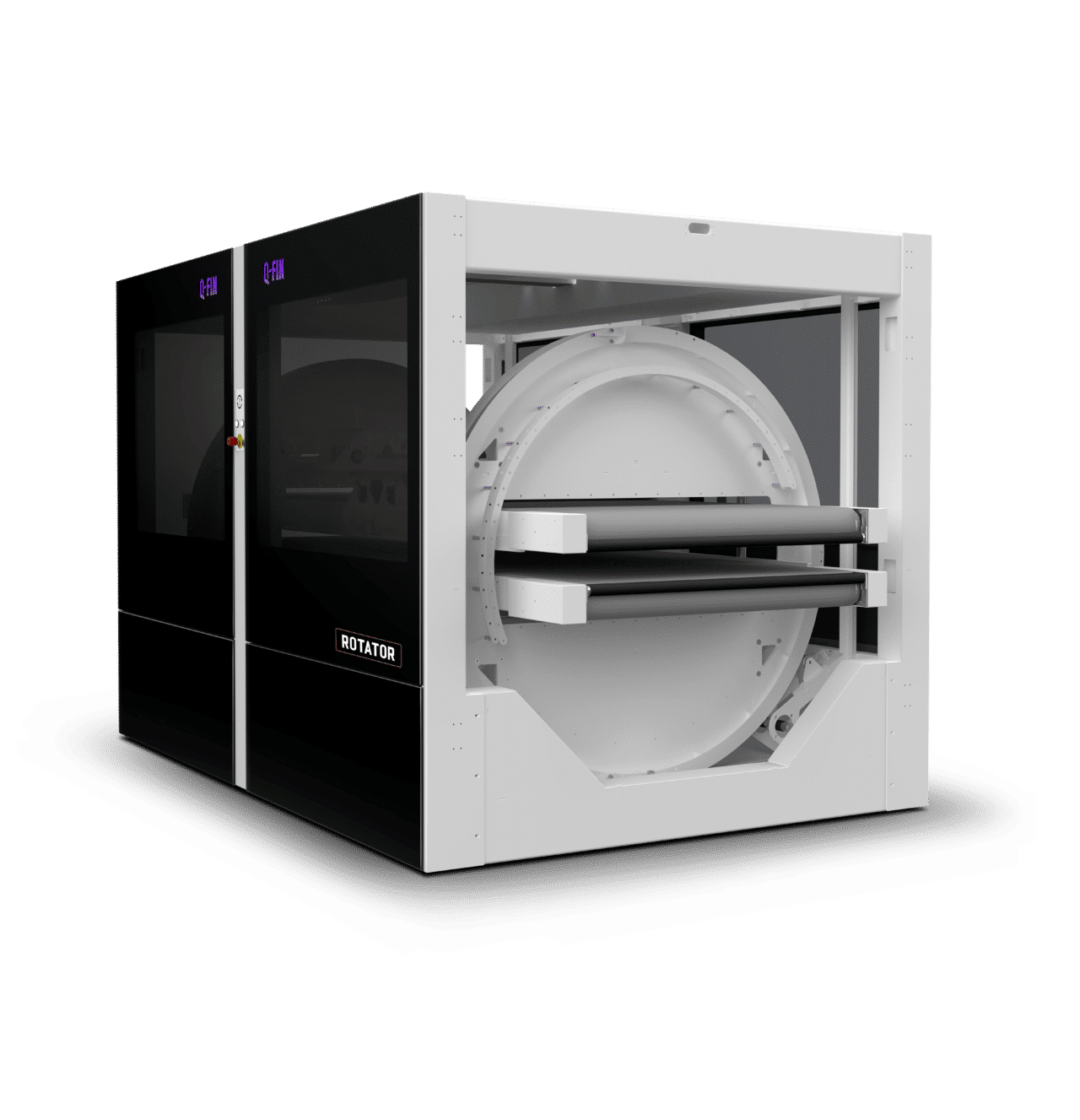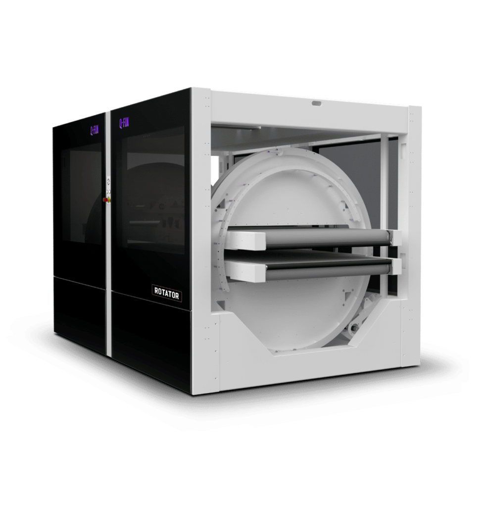 Supereffektiv dubbelsidig efterbearbetning utförs med Rotator. Denna vändningsenhet, i kombination med två Q-Fin-maskiner, möjliggör batchvis dubbelsidig bearbetning med enastående genomströmning. För plåtdetaljer upp till 1200 mm eller 1500 mm i bredd.