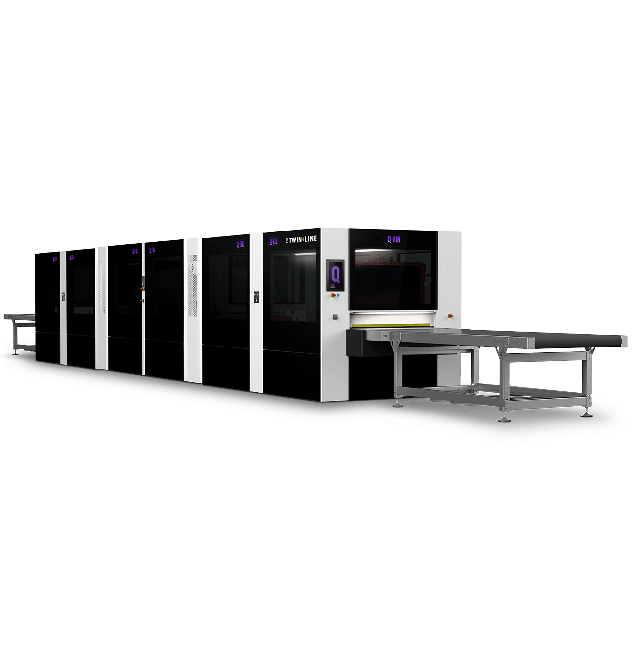 Med TwinLine kan du efterbearbeta plåtdetaljer på båda sidor i en och samma smidiga genomgång. Den kompletta linjen kombinerar två Q-Fin avgradningsmaskiner med smart in- och utmatning, vilket möjliggör batchproduktion med enastående hastighet och effektivitet.