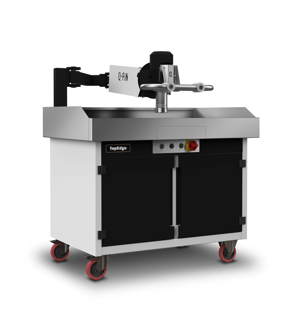 Med balansarmen och fräshuvudets egenvikt kan du arbeta med minimal fysisk ansträngning och vibrationsfri drift. Detta säkerställer en jämn och exakt bearbetning, oavsett om du fräser en radie eller en fas. Fräshuvudet kan enkelt ställas in i olika vinklar för olika applikationer. Tack vare det smidiga verktygsfästet kan du snabbt byta verktyg, och de flesta kommersiellt tillgängliga fräsverktyg – exempelvis från BevelTools – är kompatibla med TopEdge-maskinen.