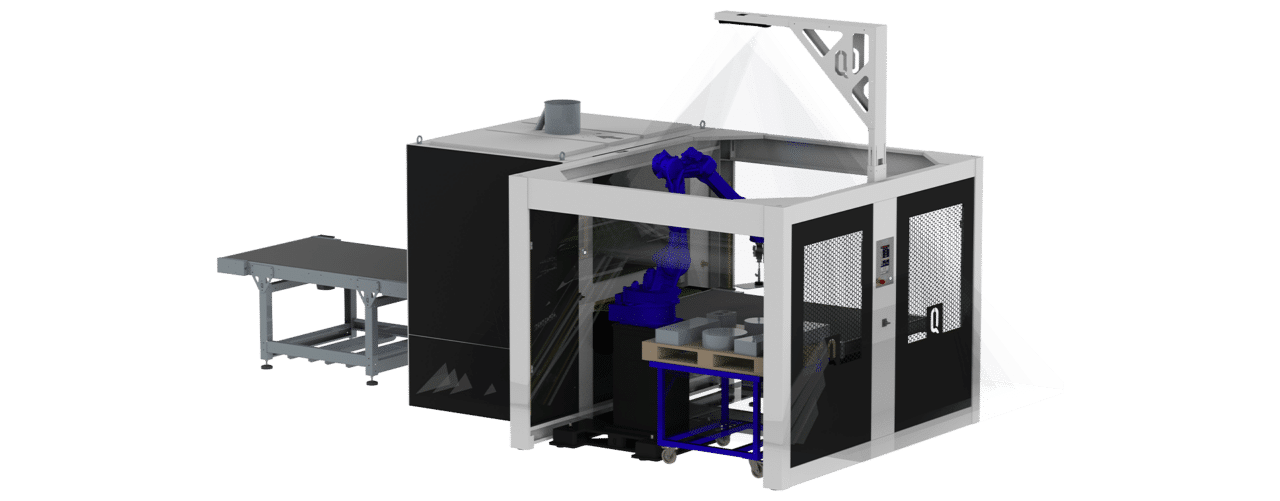 Q-Fin levererar omfattande hanteringslösningar som förbättrar prestandan hos avgradningsmaskiner. Vårt sortiment omfattar (retur)transportband som möjliggör ett sömlöst materialflöde, robotlösningar för automatiserad och precis hantering samt en flexibel vändstation som optimerar arbetsflödet.